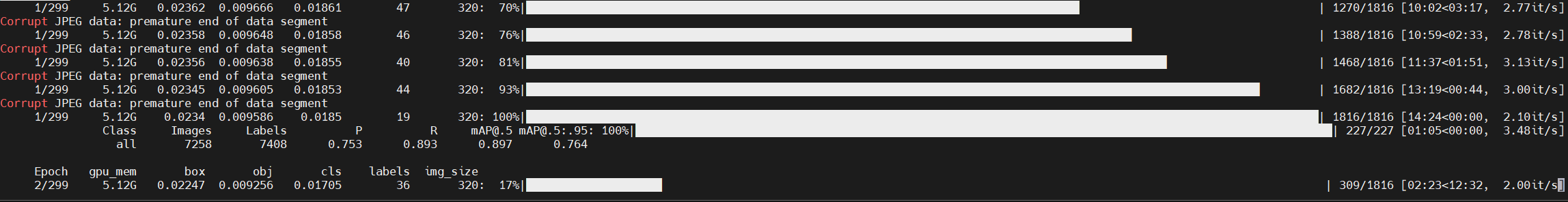 - 아래처럼 yolov5 학습중이고, 아래그림에서 gpu_mem 에도 5기가 가량 잡혀있음