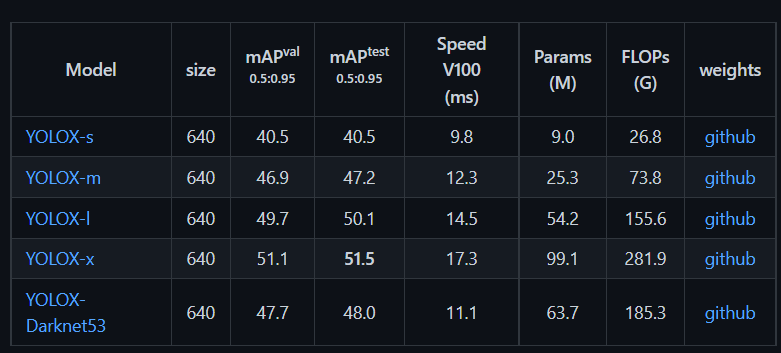 아래 mAP 에서도 보다시피 역시 yolox-x 모델이 속도는 제일 느려도 성능은 제일 좋은게 맞는 듯 하다.(cocodata 기준)