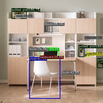 자세히 보면 책장마다 있는 book을 detect 하고, pot의 vase, cup 또한 찾았다.