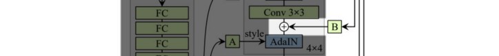 두 번째 개선 사항(C)은 매핑 네트워크 및 스타일 추가입니다. 이는 AdaIN(적응형 인스턴스 정규화)이 공간 데이터에 스타일을 적용할 때 PixelNorm을 대체합니다.