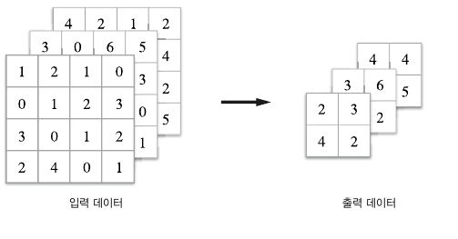 -맥스 풀링 적용 시 채널 수에 변화가 없고, 입력데이터가 조금 변하더라도 출력에 큰 차이가 없음