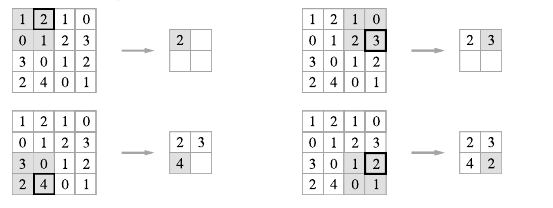 위 그림처럼, 2x2의 윈도우에서 가장 큰 수를 출력값으로 뽑음.